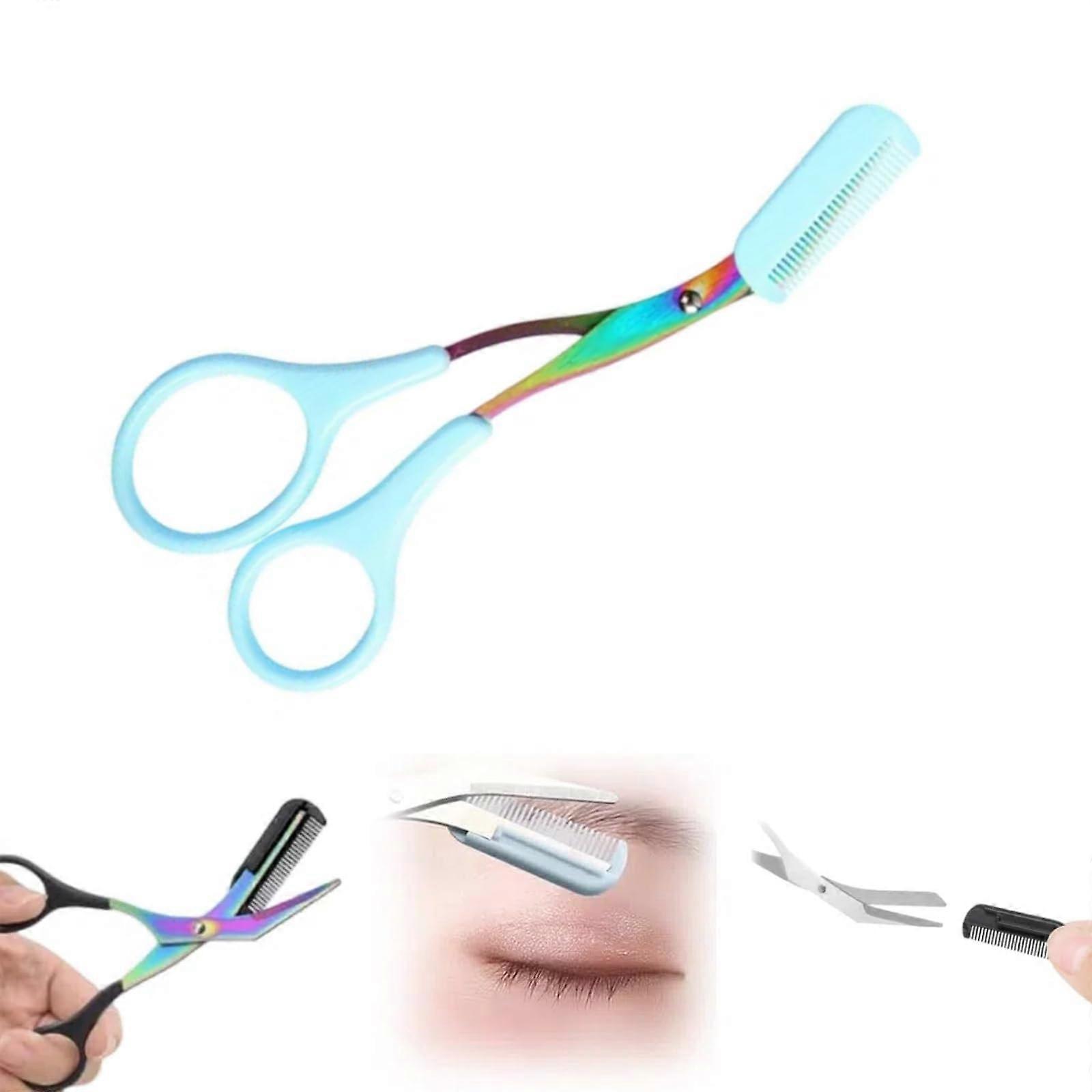 Eyebrow Scissors with Comb Stainless Steel Hair Removal Tool for Men Women 2 in 1 Blue