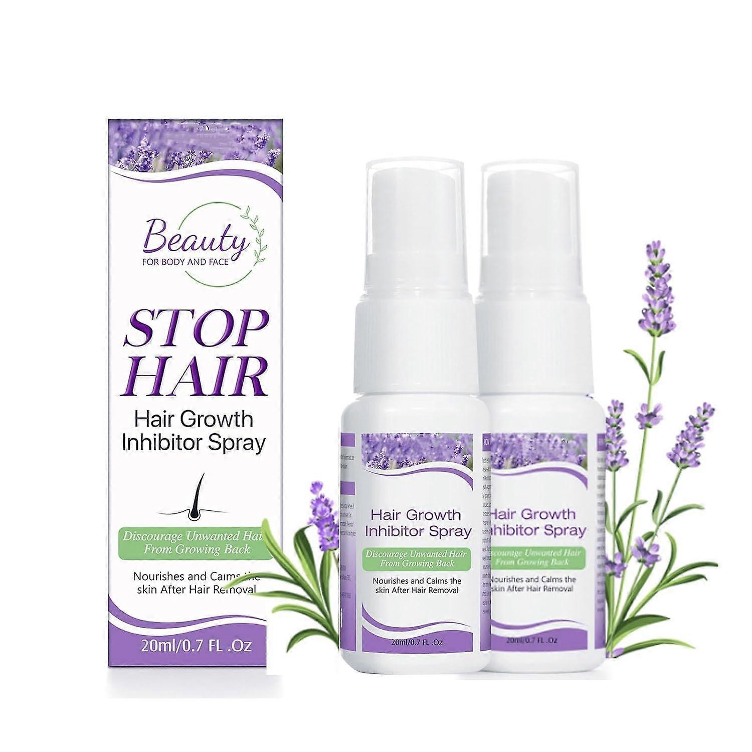 Painless Permanent Hair Removal Inhibitor Spray - 2 Pack Lavender Stop Hair Growth for Face, Arms, Legs, Armpits - 20ml Each