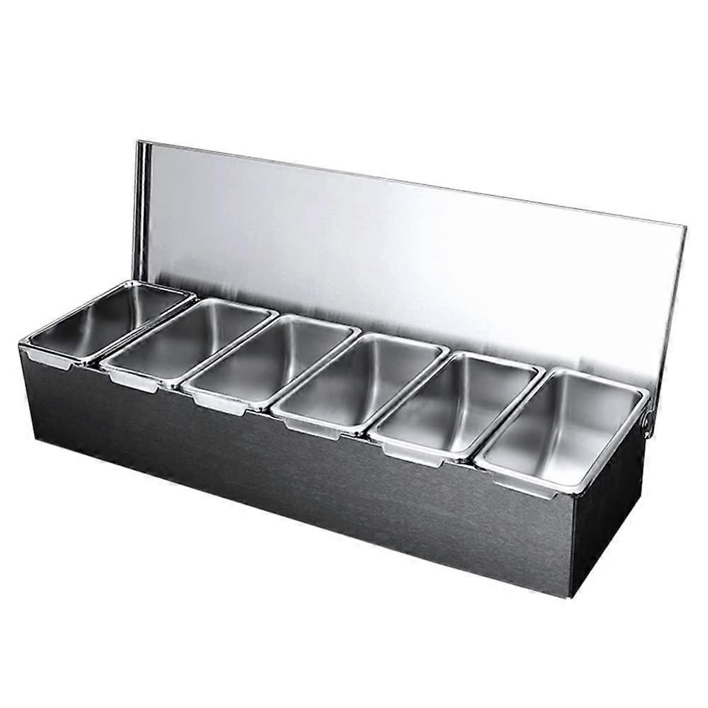Stainless Steel Condiment Organizer with Lid, 6 Grid Seasoning Box for Kitchen or Restaurant 450ml Each