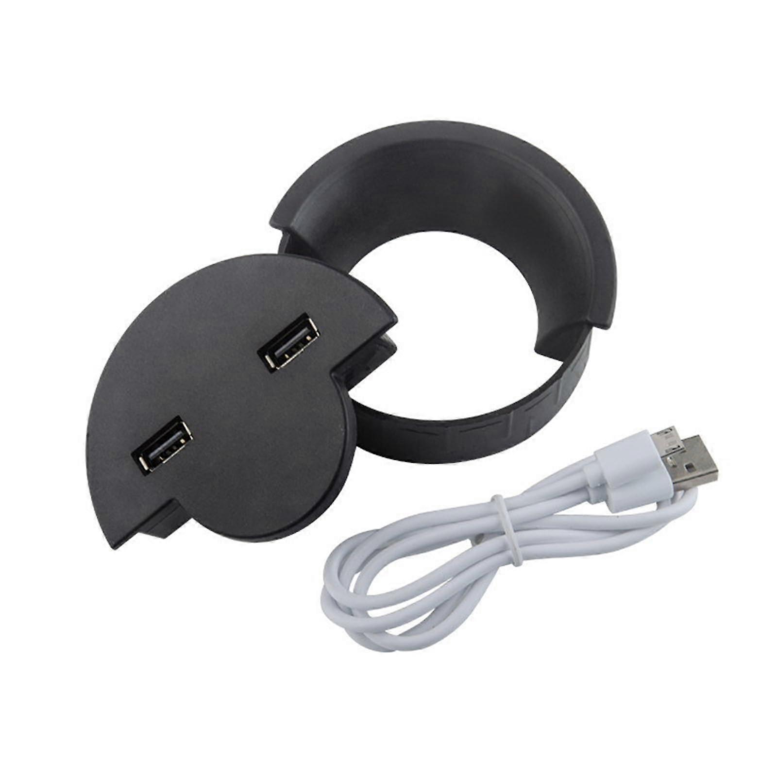 Round Wire Hole Cover USB 2Port Desk Grommet 60mm Opening For Computer Table Cable Management