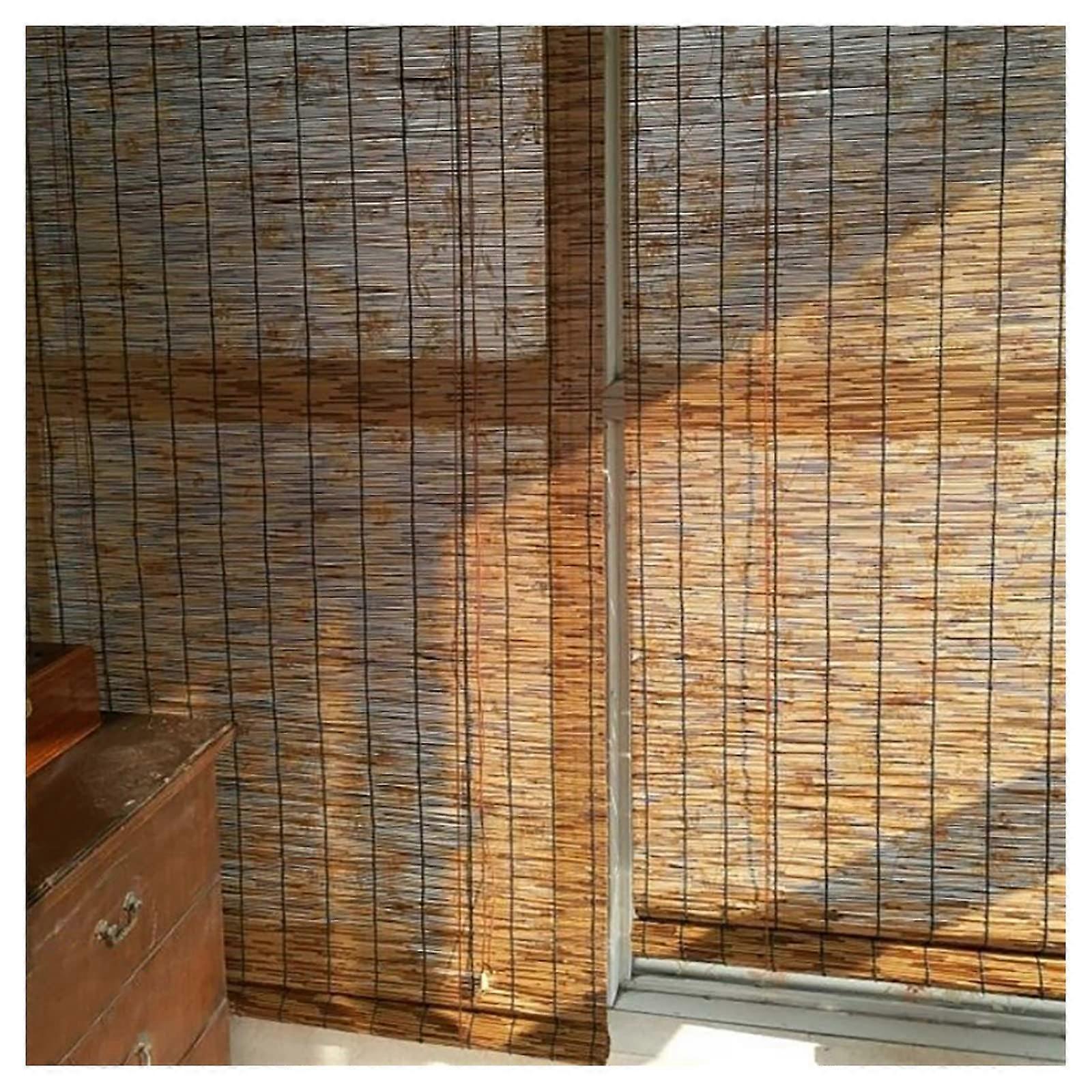 Reed Curtain for Window Retro Carbonization Roller Blinds HandWoven Reed Curtain Breathable AntiUV W135xH210cm