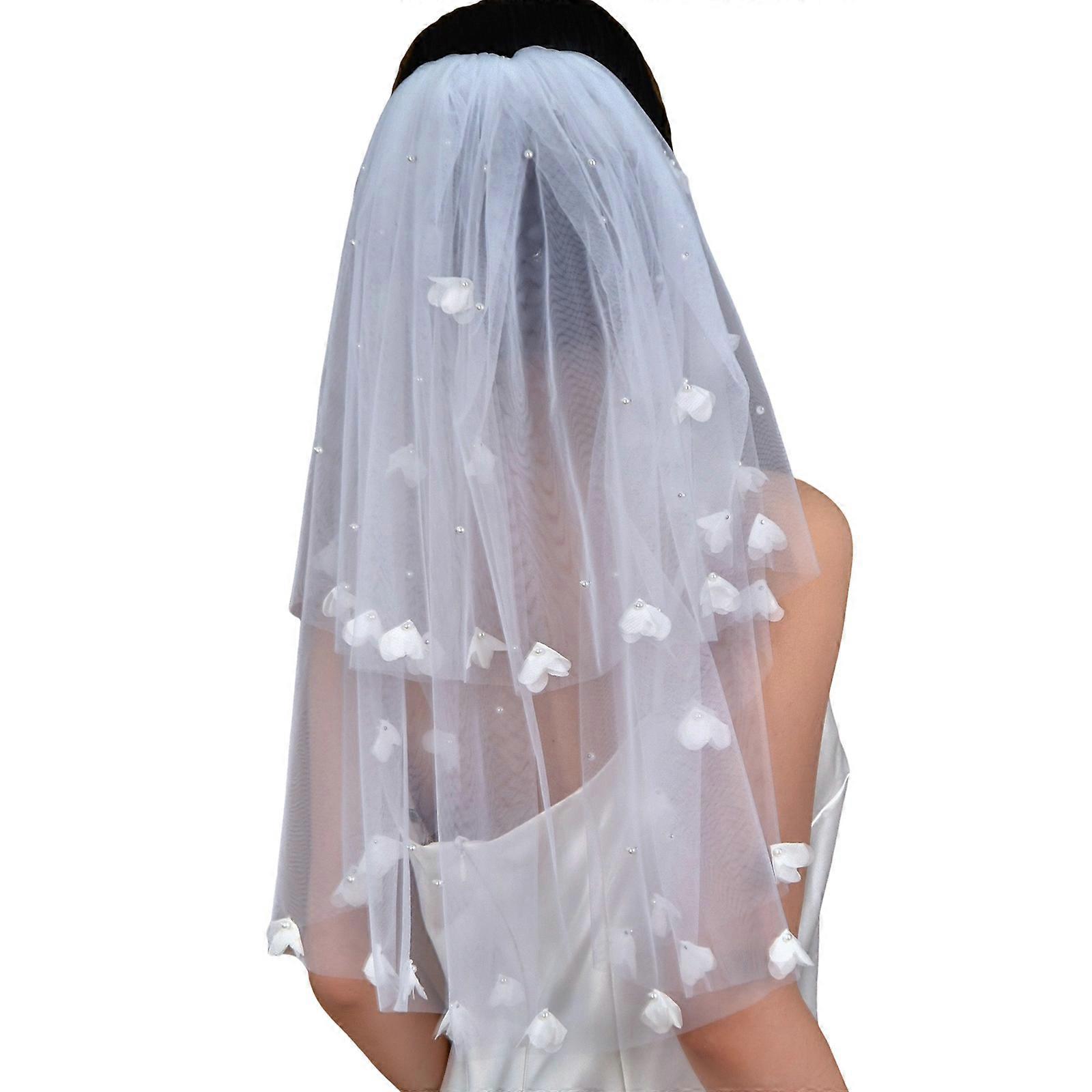 Artistic Bridal Veils with Beadwork Pearls And Flower Decors For Outdoor Wedding Ceremony Bride Photoshoots Accessories White