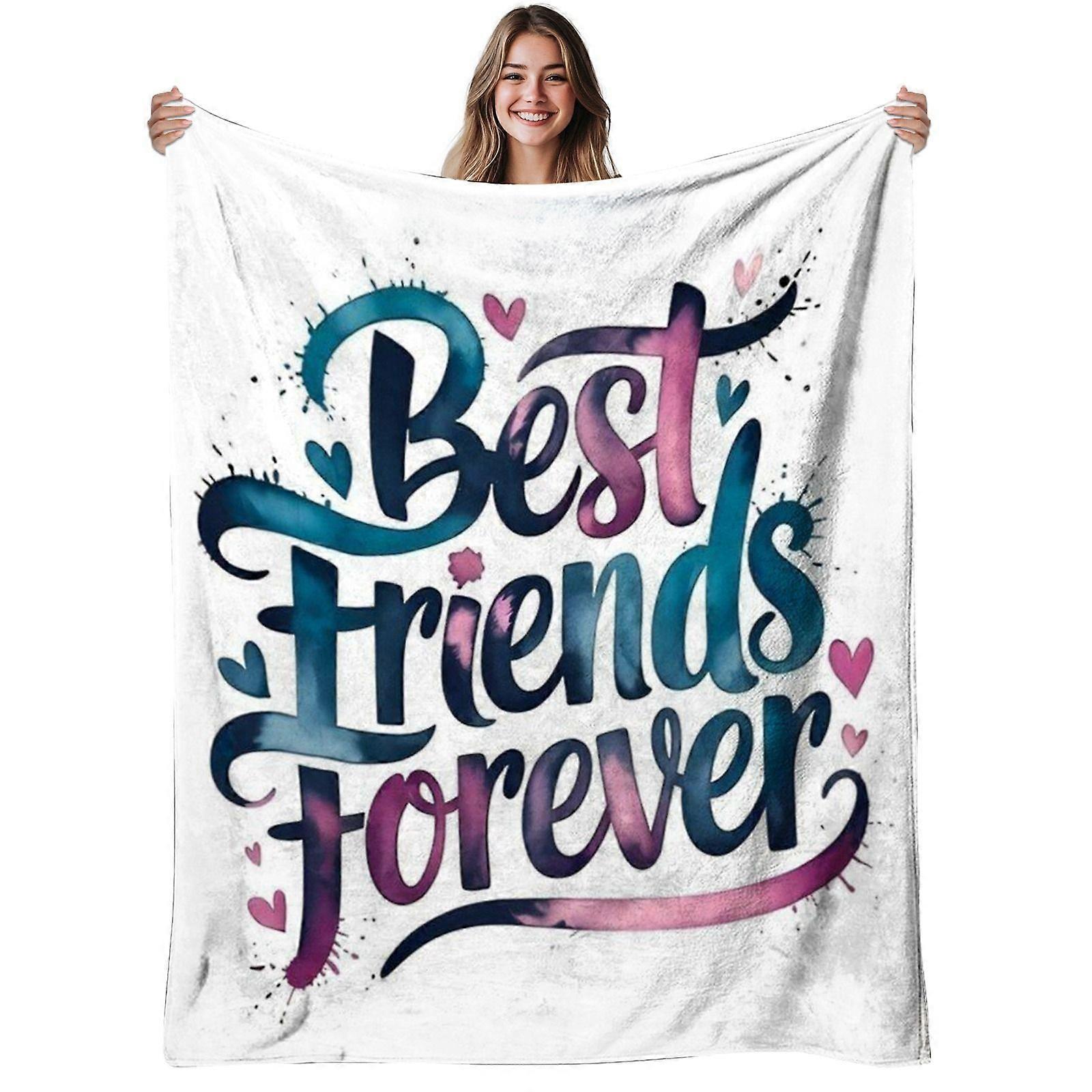 1pc Best Friends Forever BFF Flannel Blanket - Soft Warm Watercolor Heart Pattern Bedspread Suitable for Sofa, Bed, Offi-qacvbg100