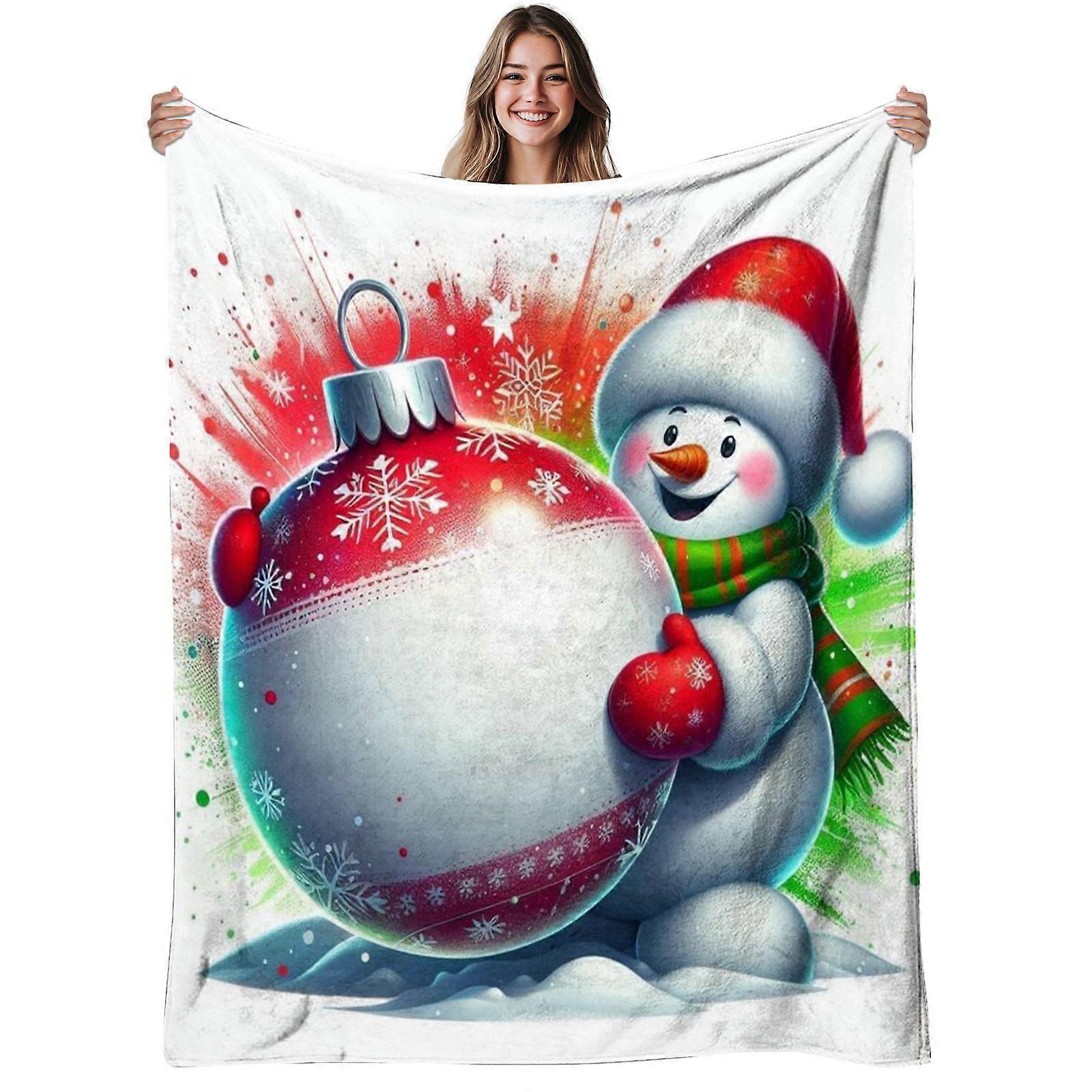 1pc Snowman with Christmas Ornament Flannel Blanket | Soft, Warm, Festive Snowflake Print, Polyester, 280gsm, All-Season-qacvbg194