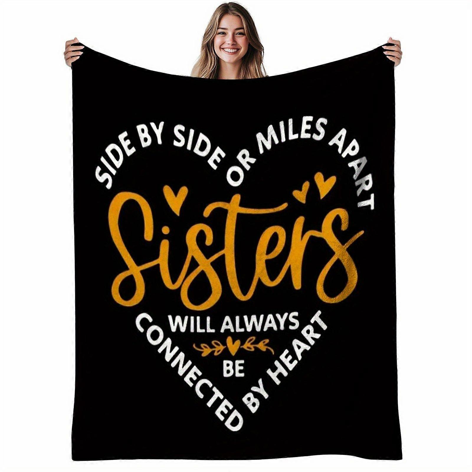 1pc Sisters Quote Flannel Blanket | Soft Warm Heart Love Typography Print for Couch Bed Living Room All-Season Use | Chr-qacvbg183