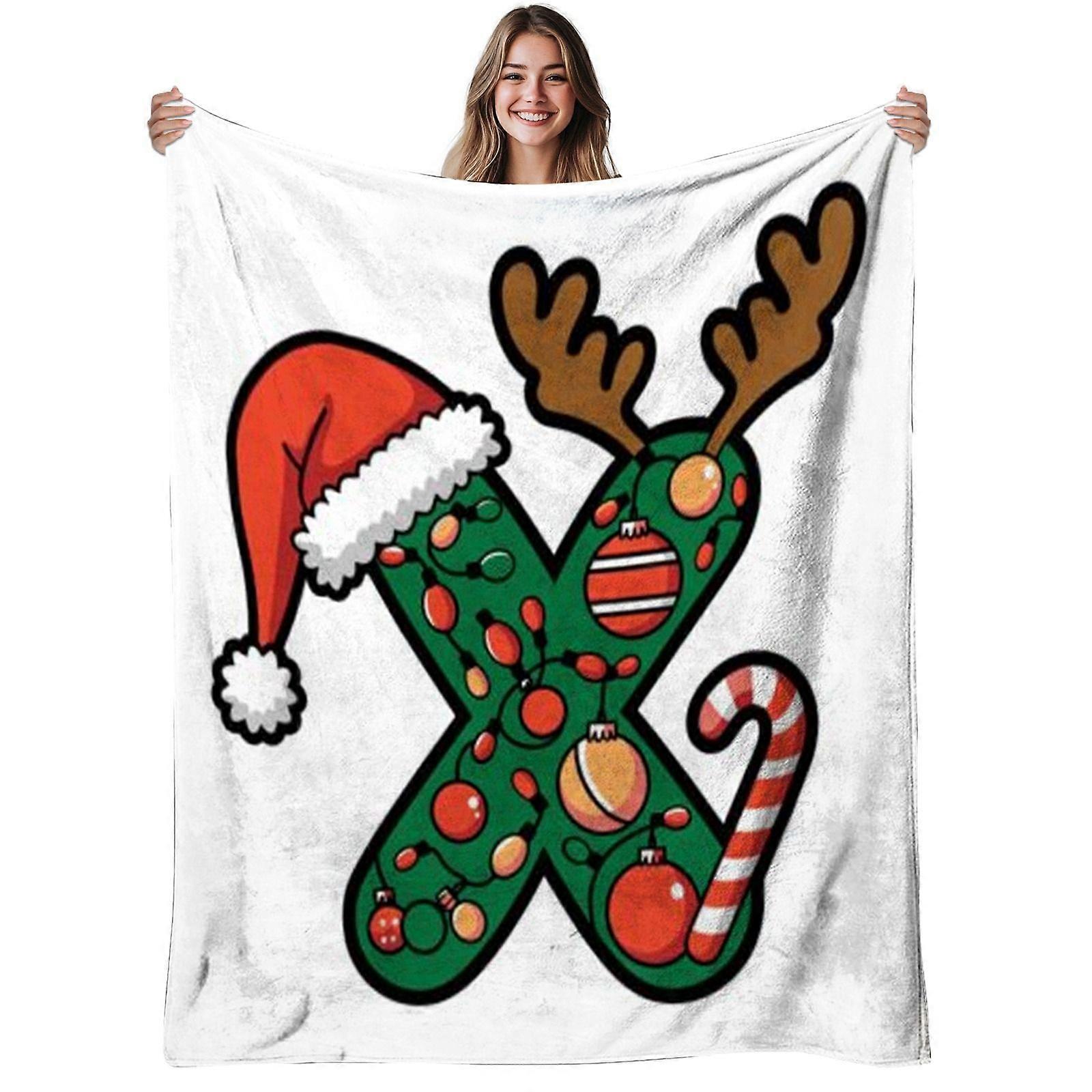 1pc Christmas Letter X Flannel Blanket | Soft, Warm, Festive Cartoon Ornament Design, Polyester, 280gsm, All-Season Use,-qacvbg102