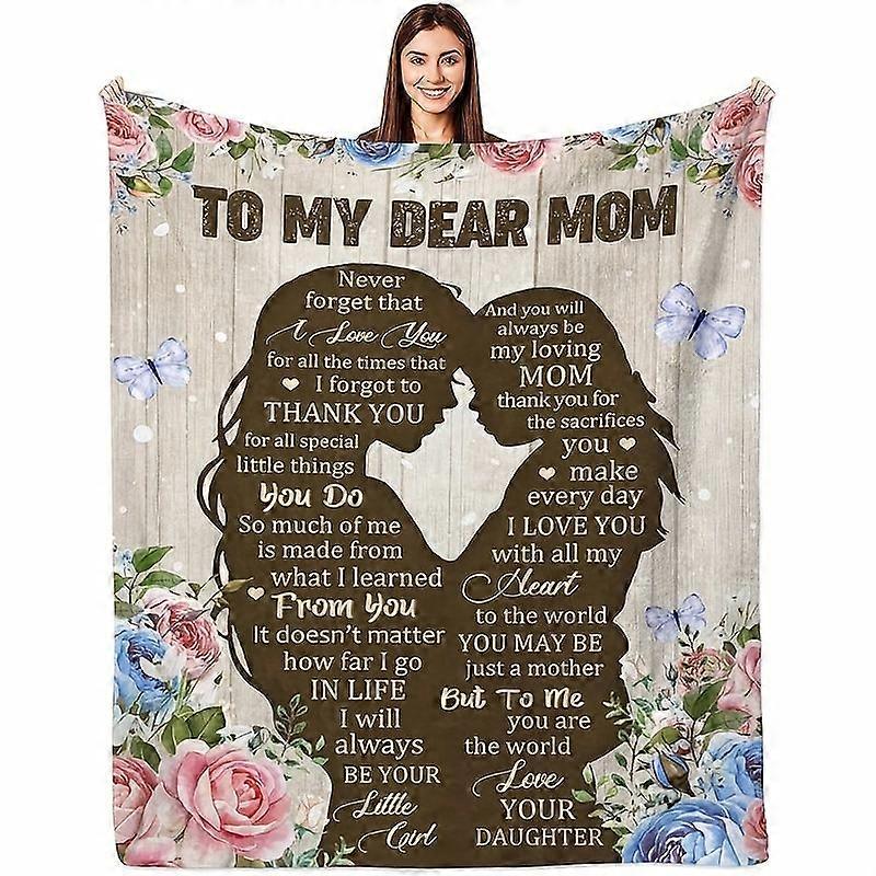 Reversible Heartfelt Mom Blanket with Floral Design - "to My Dear Mom" Message, Cozy Flannel Throw for Birthday, Christm-mnbvc251