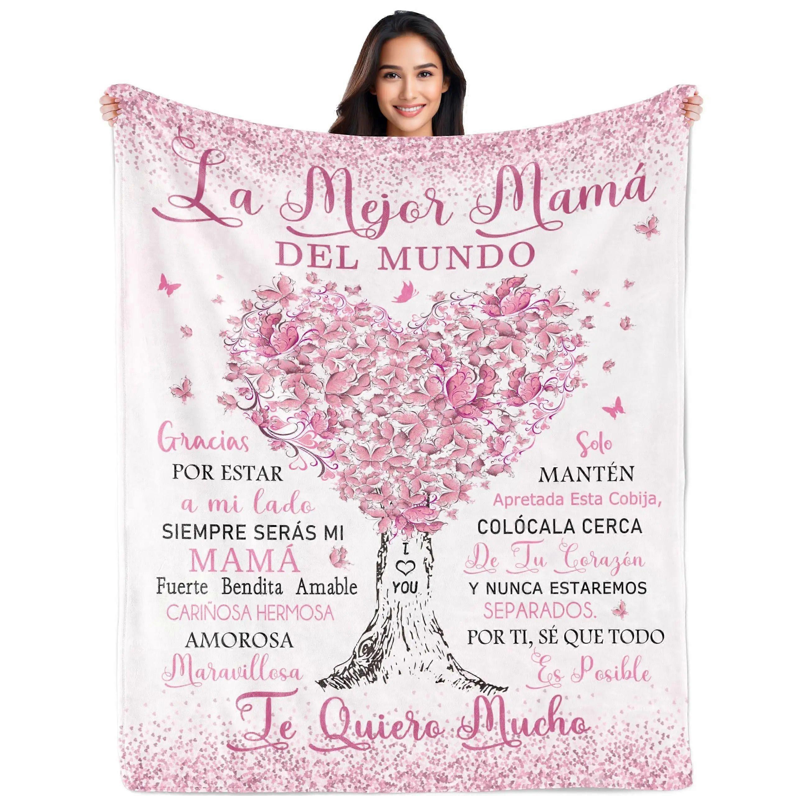 Spanish Mom Gift Blanket - Soft Flannel Throw with Floral Tree of Life Design & Spanish Love Phrases, All-Season Cozy Be-mnbvc349
