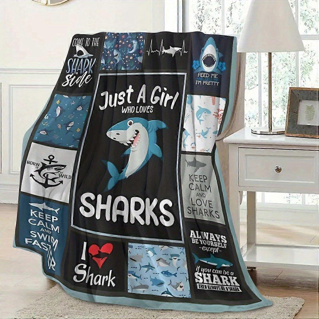 Luxury Cozy Shark Print Flannel Throw Blanket for All SeasonsSoft, Lightweight, and Warm Polyester Fabric with Fun Shark-azxcv125