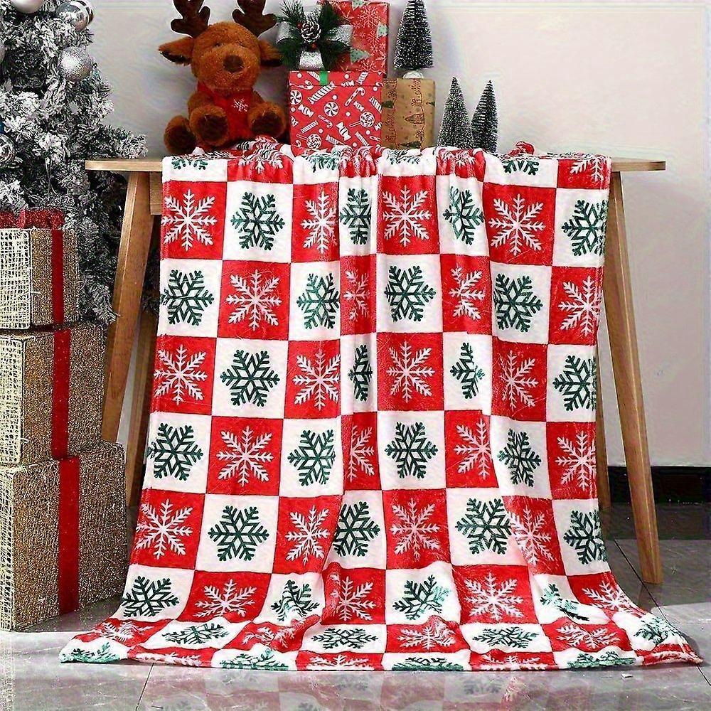 Luxury Bulk Soft Fleece Christmas Throw Blankets Red White Snowflake Checkered Holiday Design, 280gsm All-Season Cozy Bl-azxcv104