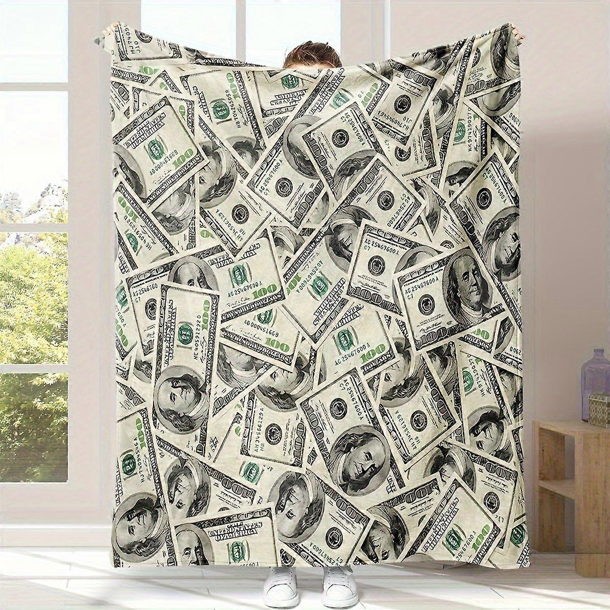 1pc Luxury Dollar Print Flannel Blanket - Soft Cozy Throw for Couch, Camping & Air Conditioning, All-Season Machine Wash-azxcv105