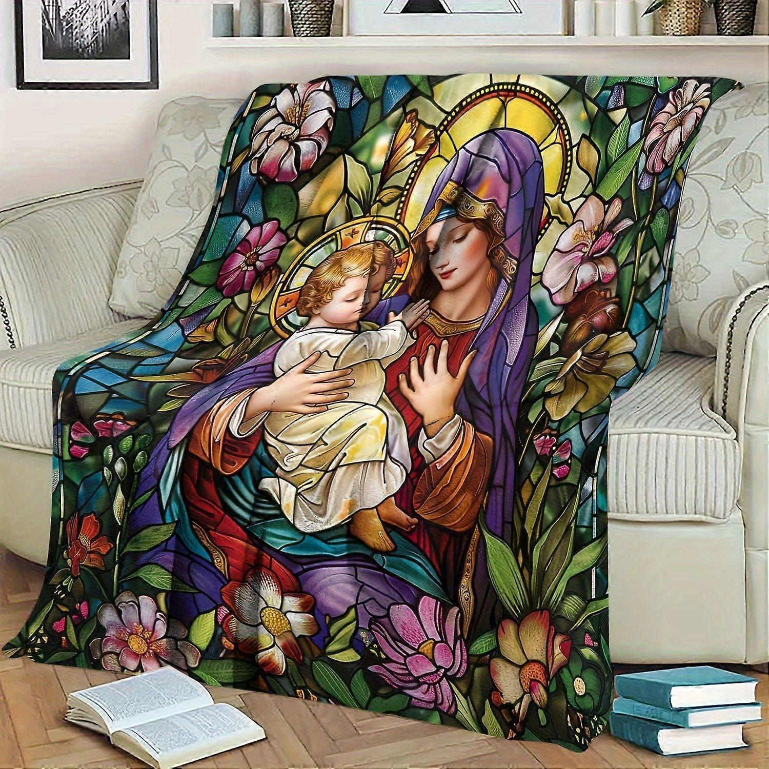PrintedInUSA Stunning Stained Glass Style Blanket Featuring the Virgin Mary and Baby Jesus Perfect Gift for Friends and -azxcv248