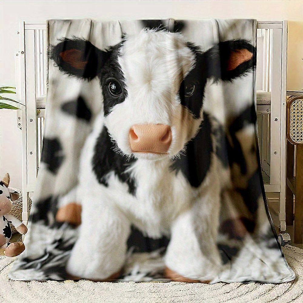 Luxury Cozy Cows Print Flannel BlanketSoft Warm Polyester Fleece Throw with Adorable Black White Cow Design, All-Season -azxcv250