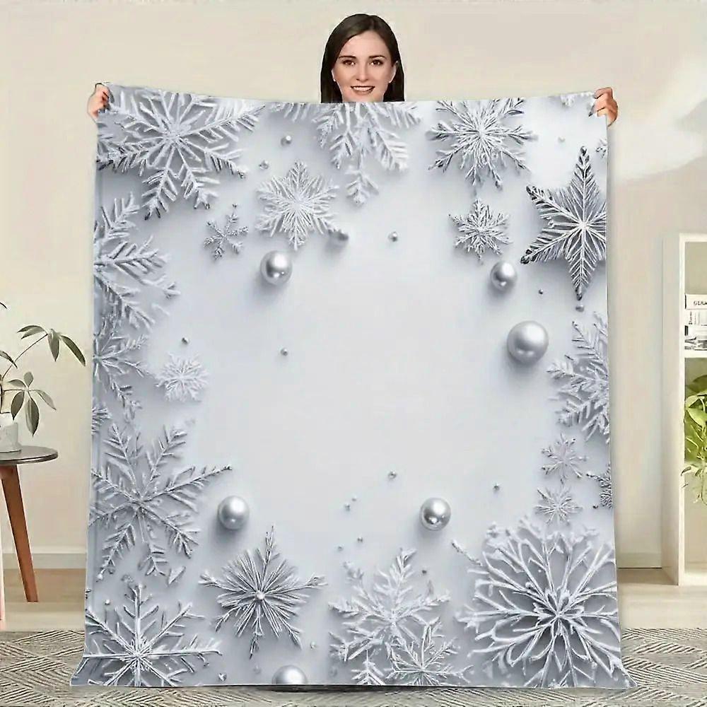 Soft Flannel Blanket with Elegant Silver Snowflake Design - Cozy Winter Throw for Home Decor, Perfect Christmas Gift for-azxcv208