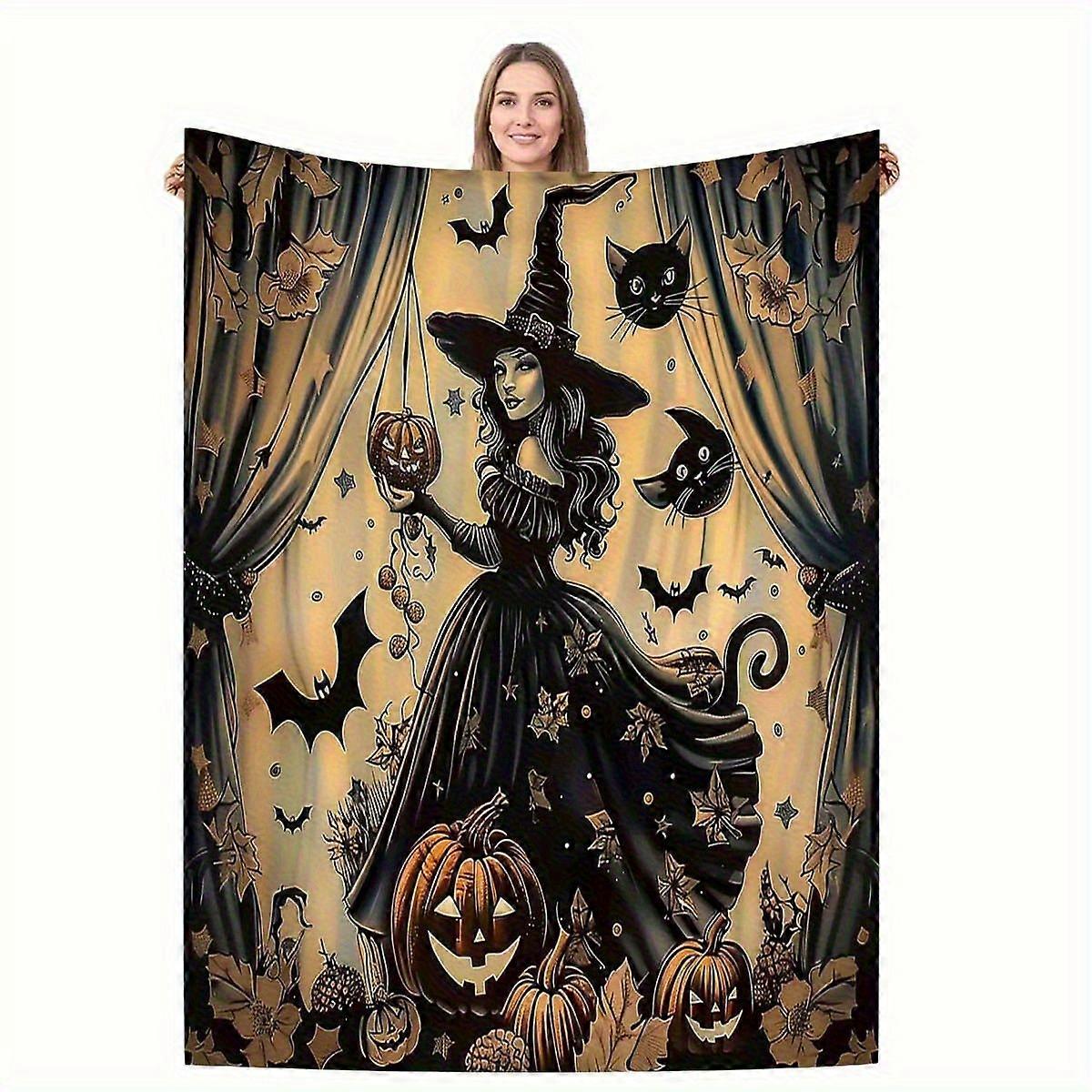 Spooky Halloween Witch Bat Flannel Throw Blanket - Soft Cozy Flannel with Pumpkin & Bat Design, Machine Washable, Perfec-azxcv58