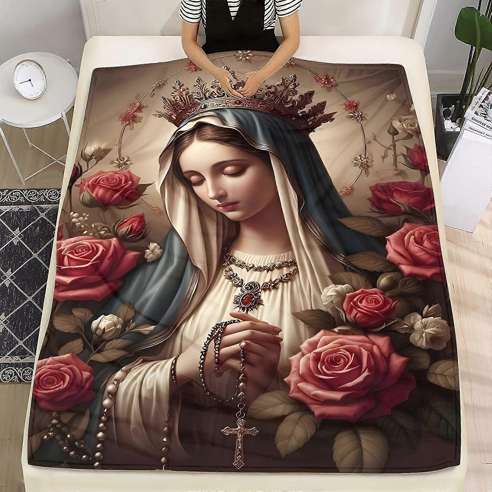 PrintedInUSA Bohemian Virgin Mary & Floral Throw Blanket - All-Season Super Soft Flannel, 280gsm Machine Washable, 4 Siz-azxcv401