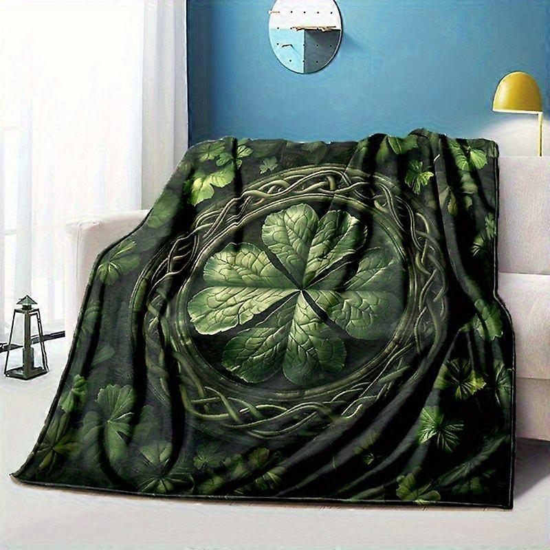 Luxury Vintage Style Lucky Clover Pattern Throw Blanket All-Season Cozy Polyester Flannel Animal Theme Ideal for Bed, So-azxcv369