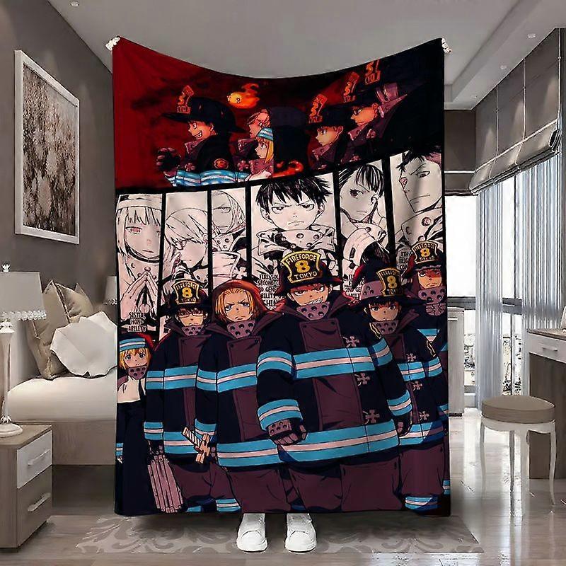 Fire Force (Inosawa Fire Department) Anime Blanket - Shiro & Blue Characters, Captain Obi-Rashigani, Hawks - Plush Flock-jghds281