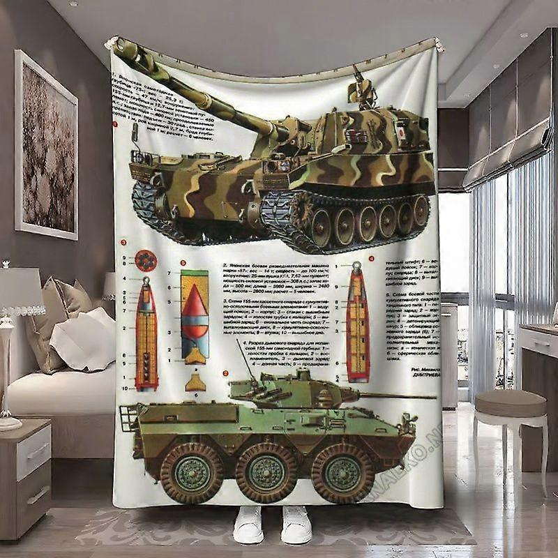 Self-Propelled Artillery Reconnaissance Vehicle Illustrated Pattern Ultra-Soft Digital Print Flannel Blanket, Ultra-Soft-asdfg57