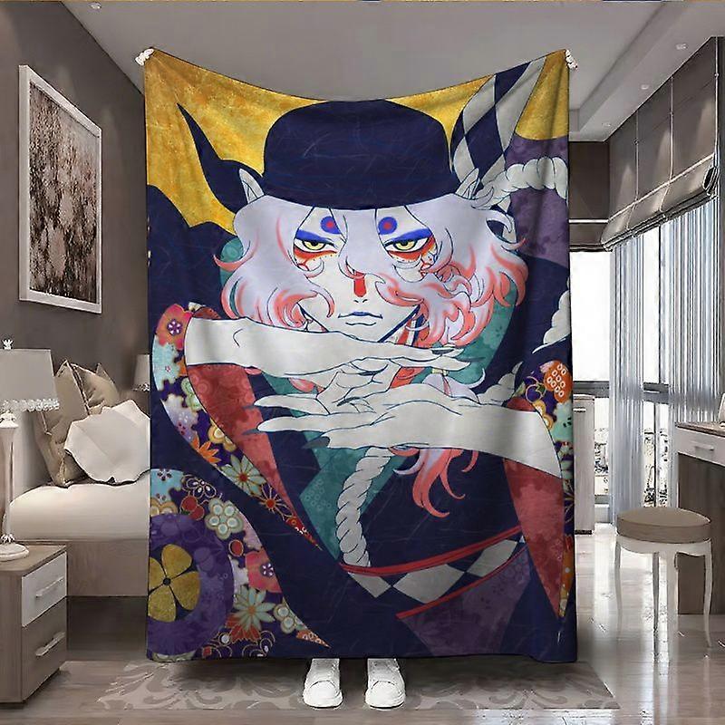 The Ashes of Rage Japanese Traditional Demon Character Design Ultra-Soft Flannel Blanket, All-Season Comfort for Sofa an-asdfg107