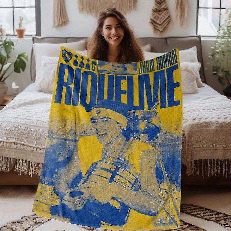Rickime-Themed Plush Blanket - French Soccer Joan Garna & Riquelme Design, All-Season Soft Bedspread for s &, Machine Wa-asdfg122