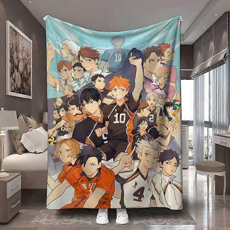 Haikyuu!! Anime Plush Blanket - Soft Flannel Bedspread with Toru Oikawa & Team Karasuno Characters, All-Season Manga Bed-asdfg188