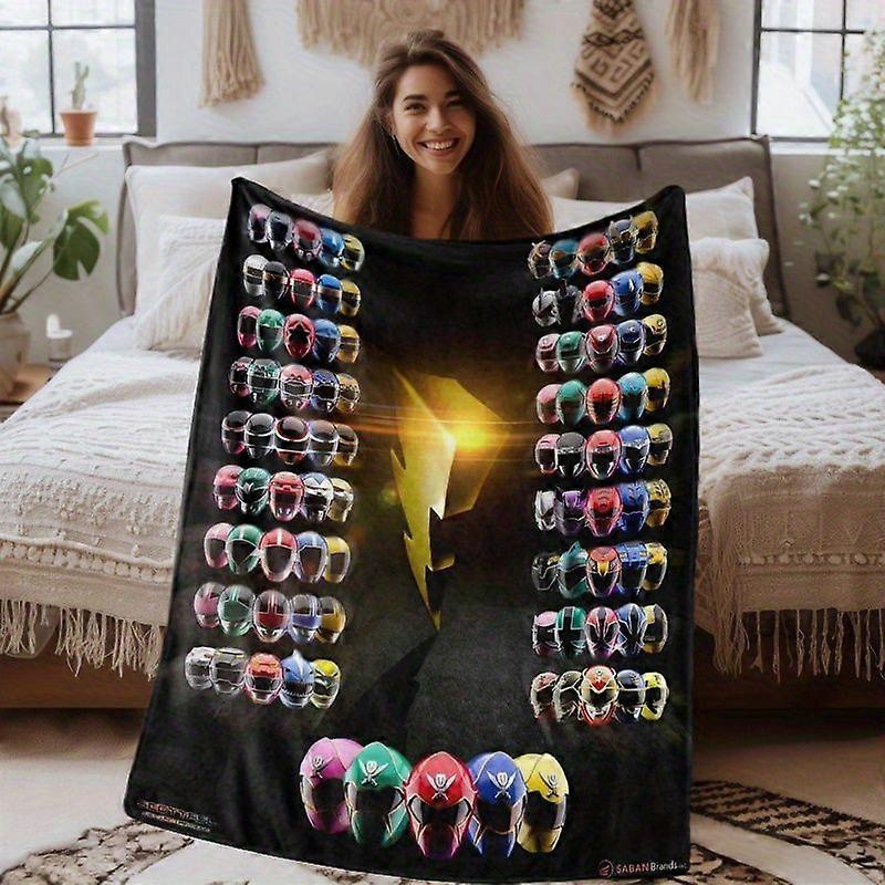 Ultra-Soft Flannel Blanket Featuring Legendary Power Rangers Helmets, Classic Lightning Logo & Sword Dragon Design - All-asdfg117