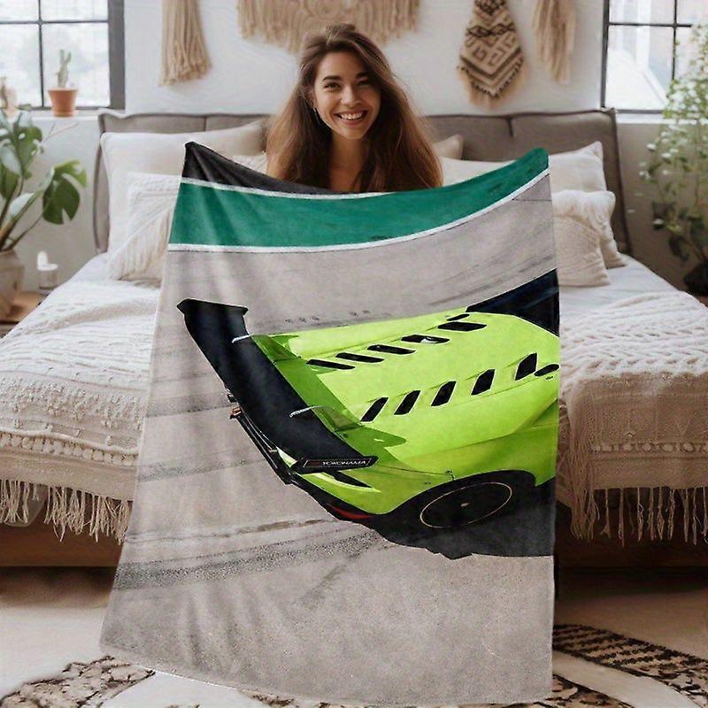 Ultra-Soft Flannel Racing Car Throw Blanket - Vibrant Green & Black Digital Print, All-Season Comfort for Sofa & Bed, Ma-asdfg217