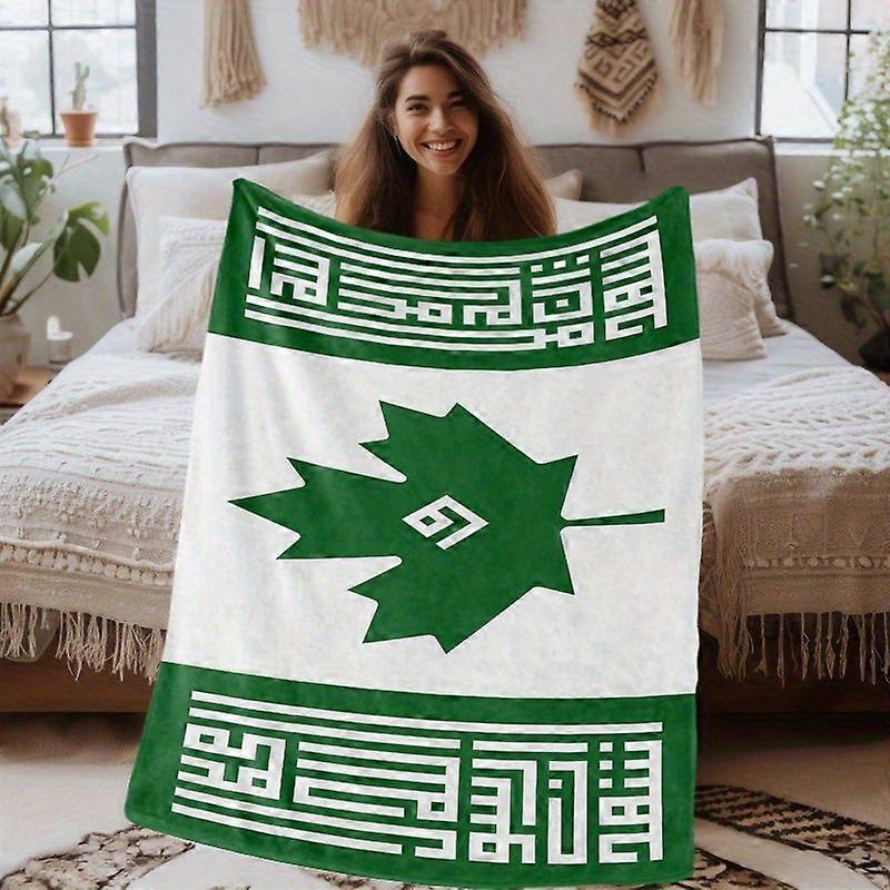 Ultra-Soft Flannel Blanket with Green Maple Leaf & Geometric Design - Cozy All-Season Throw for Sofa, Bed, Travel, and C-asdfg239