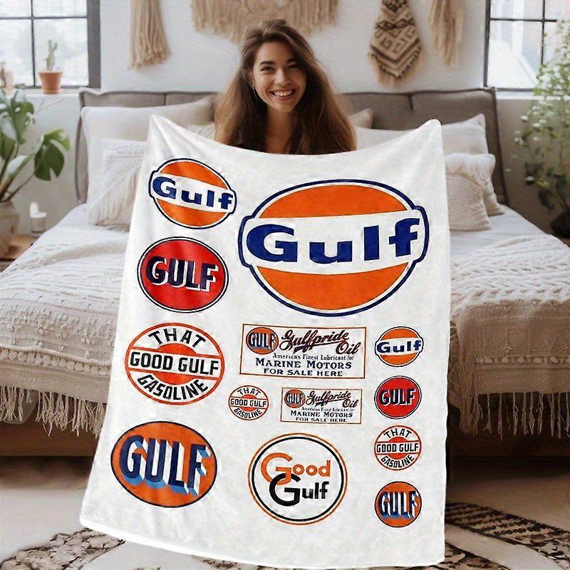 Gulf Logo Vintage Oil Branding Plush Blanket - All-Season Soft Bedspread with Iconic Gulf Station Design (Texaco-Inspire-asdfg319
