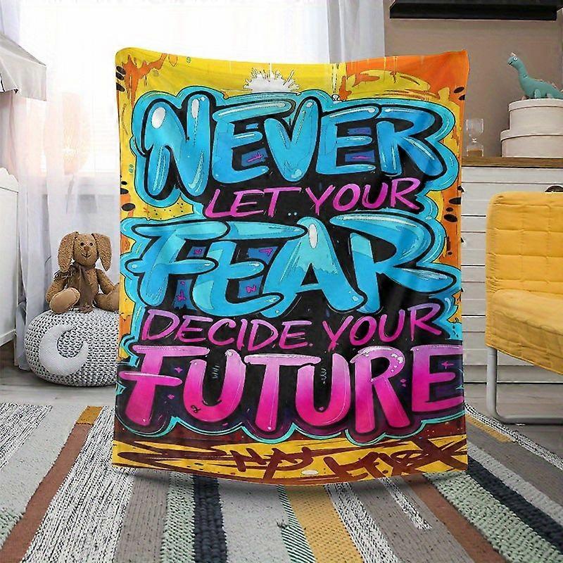 Never Let Your Fear Decide Your Future Motivational Throw Blanket - Ultra-Soft Flannel Sofa Bedspread - All-Season Softn-asdfg340