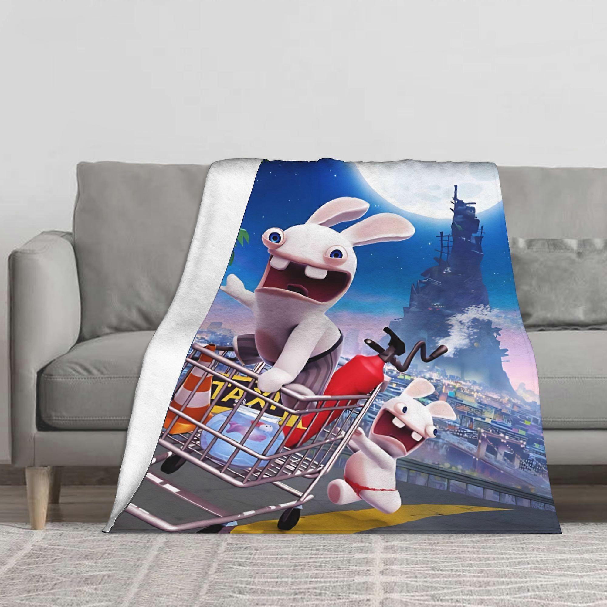Rabbids Video Game Character Plush-Soft Flannel Blanket - Iconic White Rabbids Bunny & Iconic Poses, All-Season Cozy Bed-azxcv286