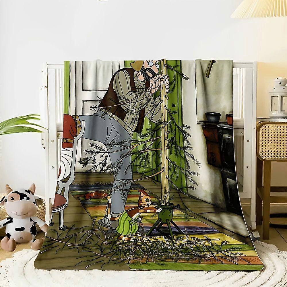 1pc Pettson and Findus Inspired Flannel Fleece Blanket - All-Season Soft Warmth, Machine Washable, Mixed Colors, Perfect-azxcv309