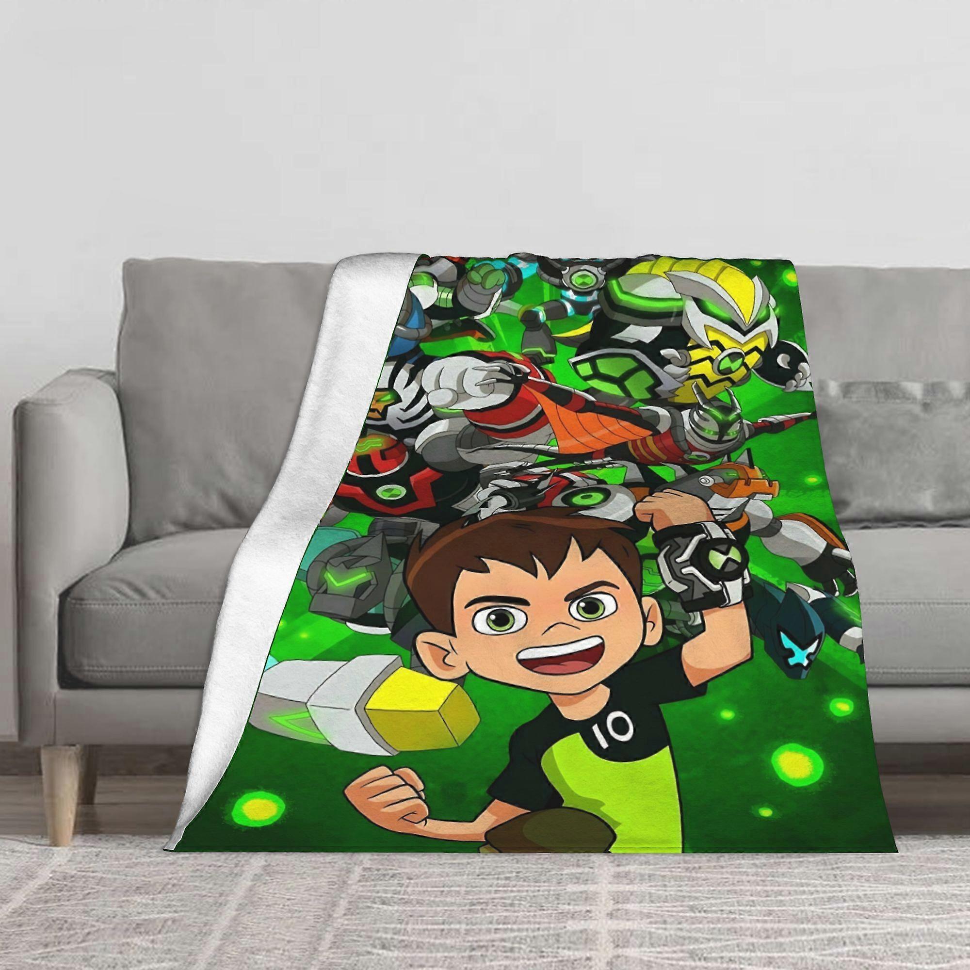 Ben 10 Inspired Ultra-Soft Flannel Blanket - Vibrant Cartoon Character Design, Warm & Cozy Polyester Throw for Living Ro-qazxc20