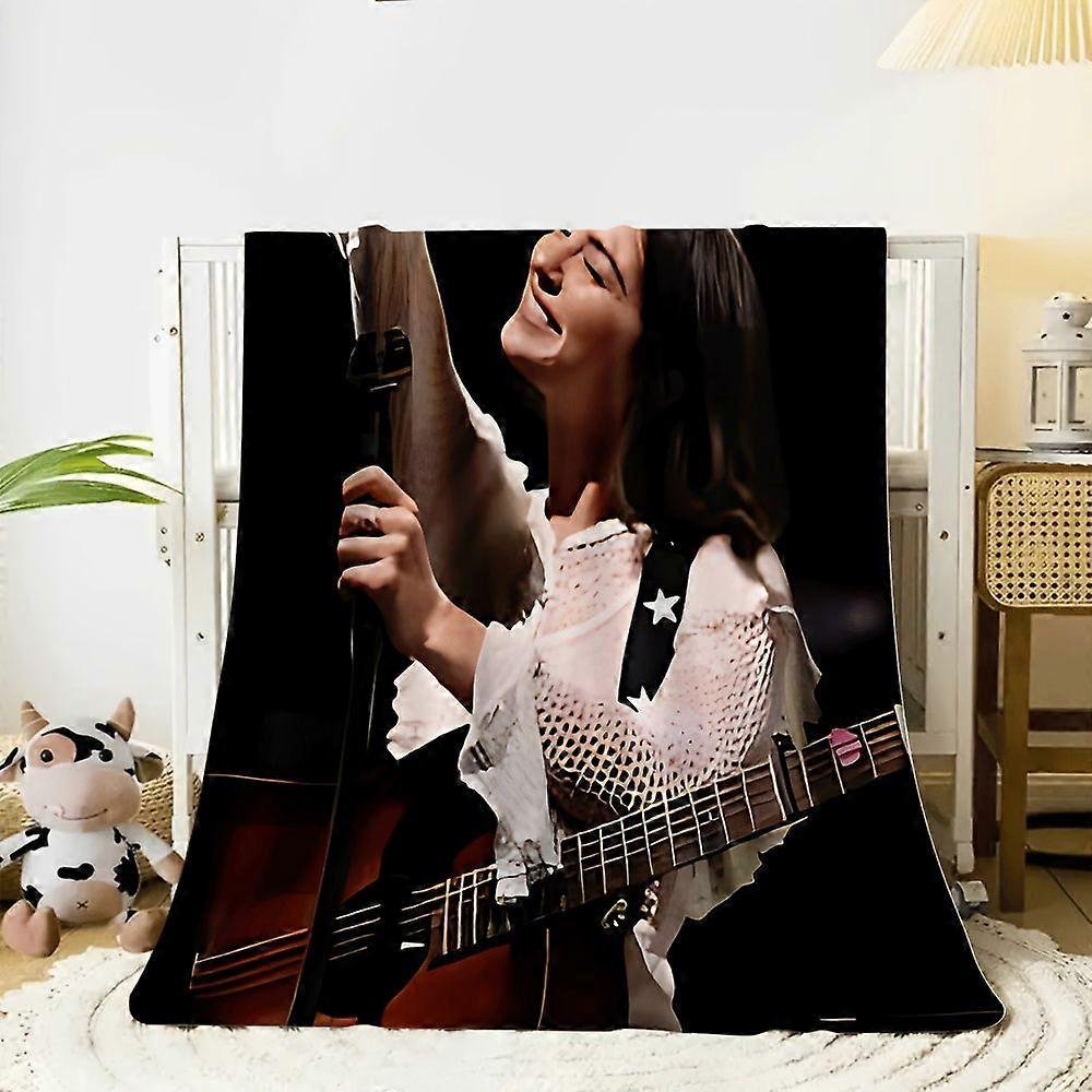 1pc Gracie Abrams Style Flannel Blanket - Super Soft All-Season Music-Themed Design with Singer & Guitar Print, Cozy Thr-qazxc107