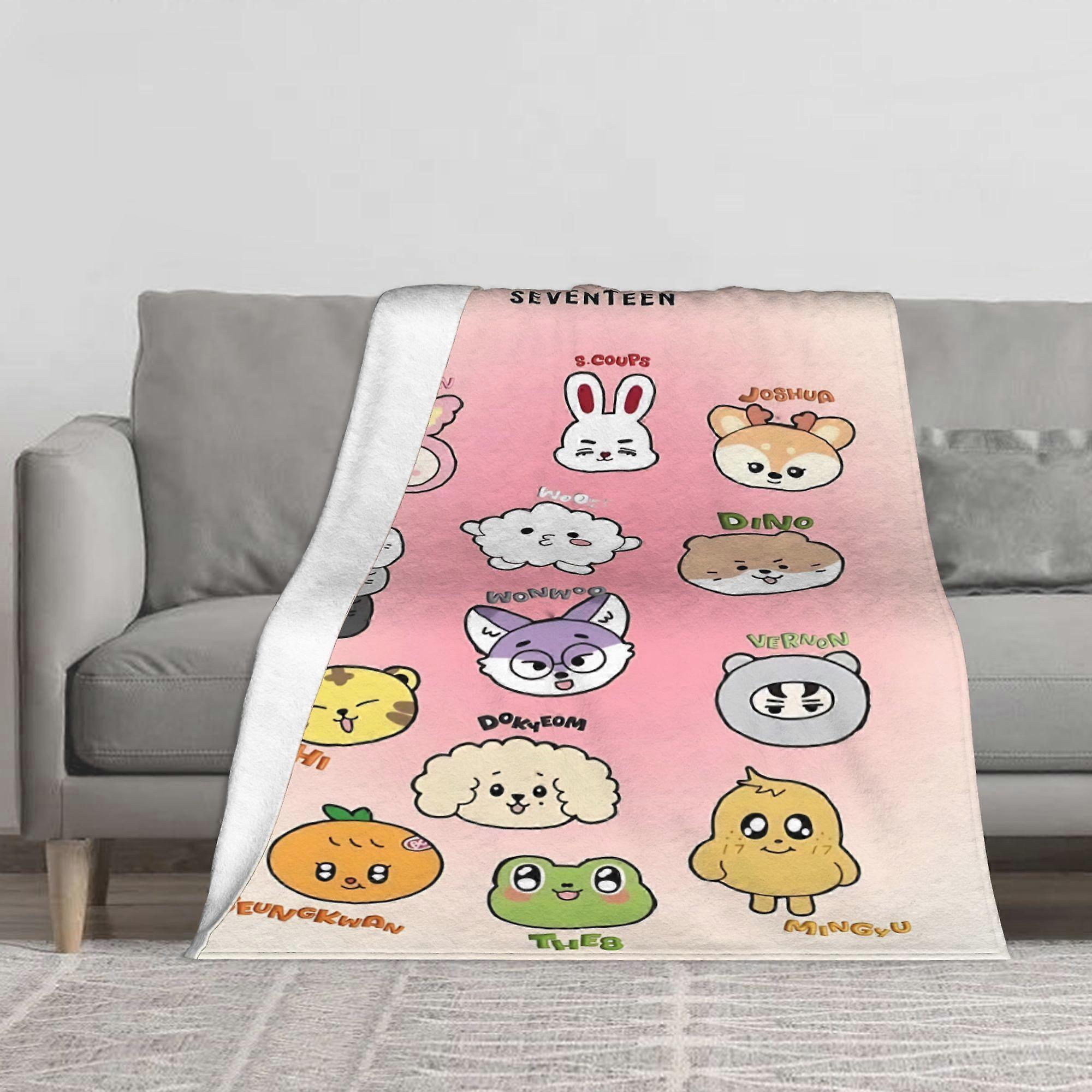 SEVENTEEN FANART Throw Blanket - Plush Flannel All-Season Soft Bedspread with Member Names & Positions, Pastel Pink & Mu-qazxc417
