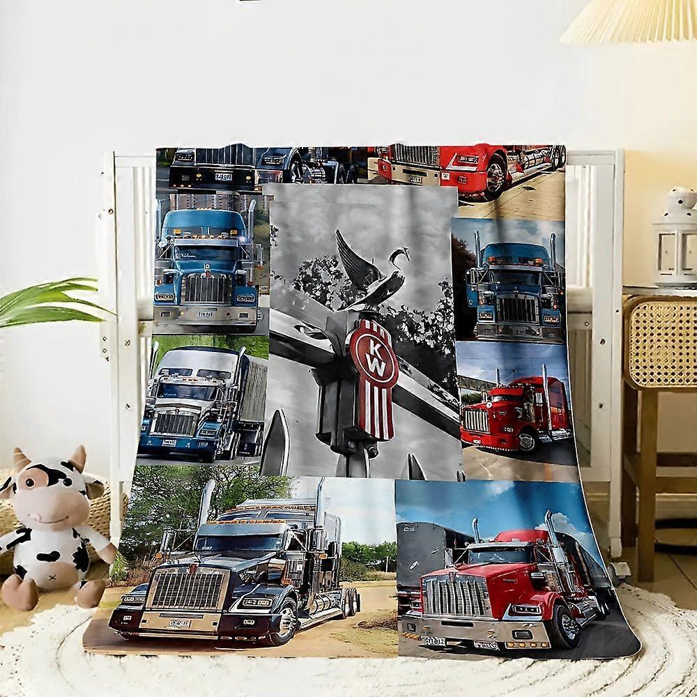 1pc Kenworth Truck Series Flannel Blanket - Vibrant Mixed Colors, Durable Polyester, Machine Washable, Perfect for Trave-qazxc422