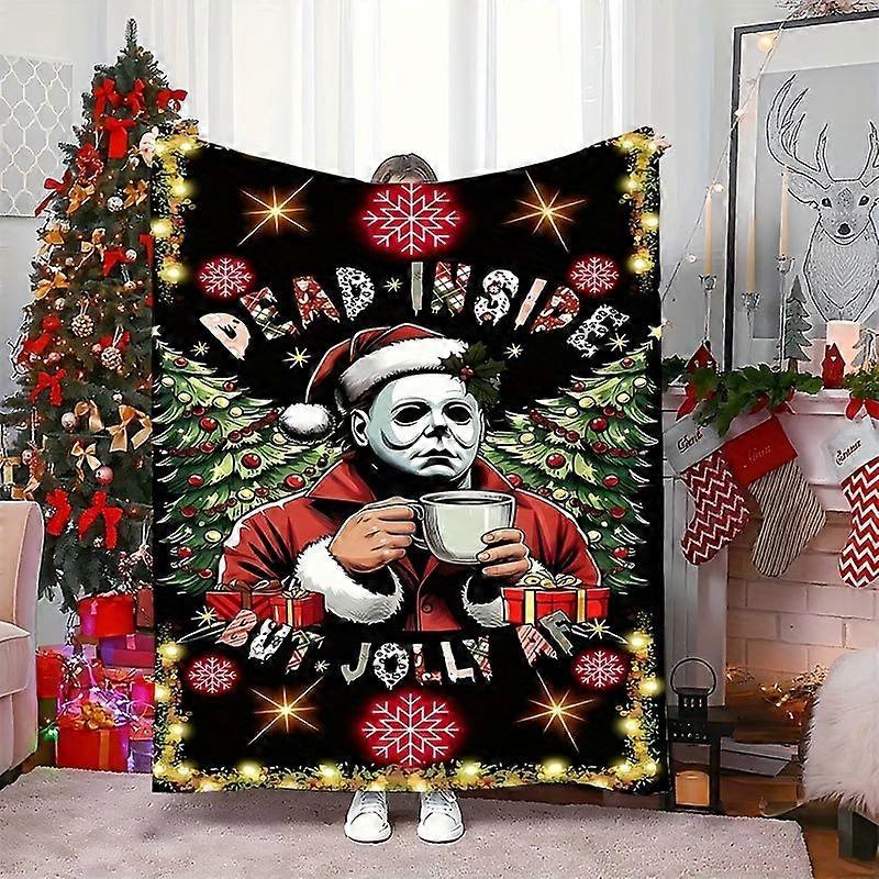 1pc Michael Myers Christmas Horror Blanket - Official Halloween Throw with Santa Hat, Soft Flannel All-Season Couch, Bed-poiuy109