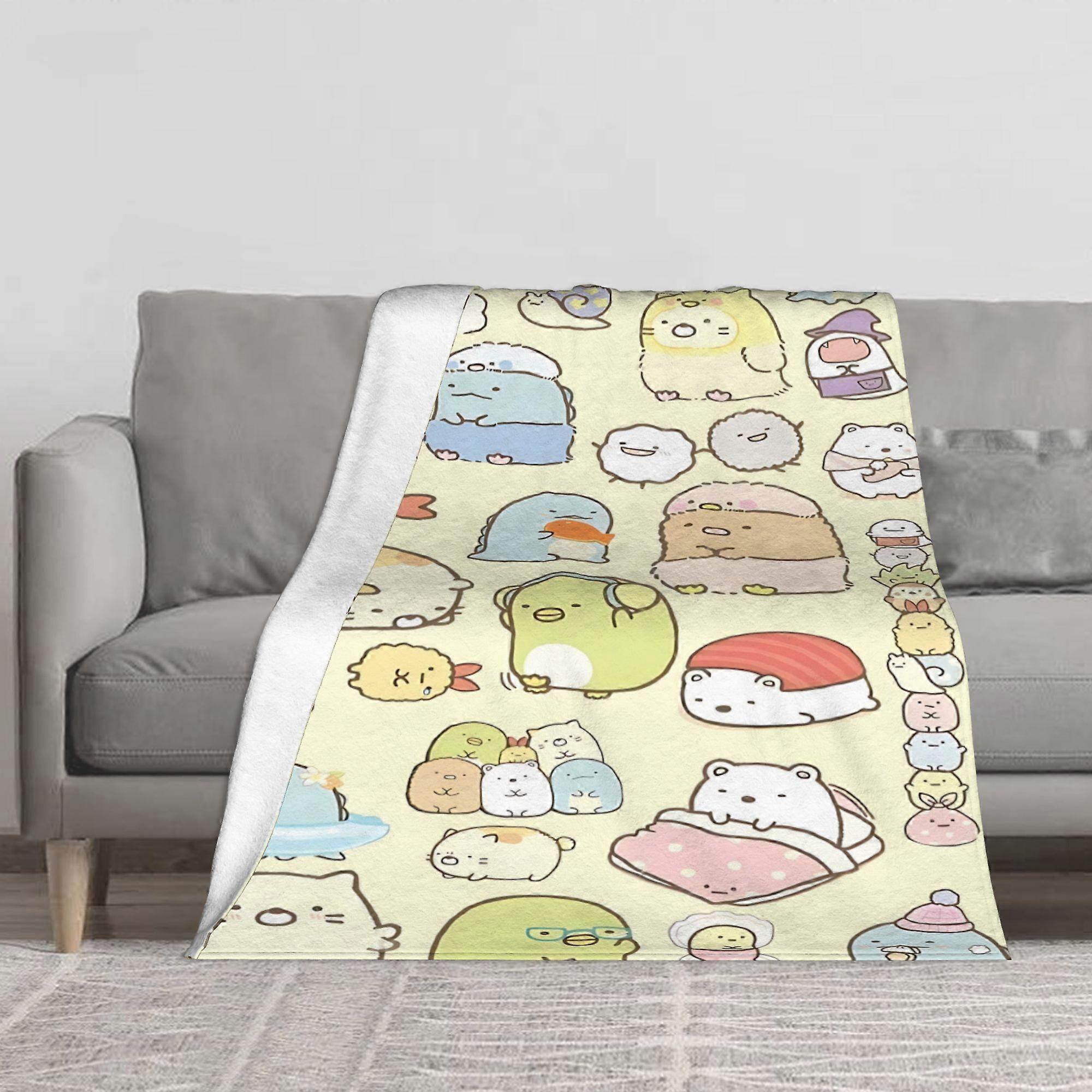 Sumikko Gurashi Inspired Blanket - Soft Flannel Throw with Cute Anime Characters, All-Season Cozy Bedspread for Home, Tr-poiuy58