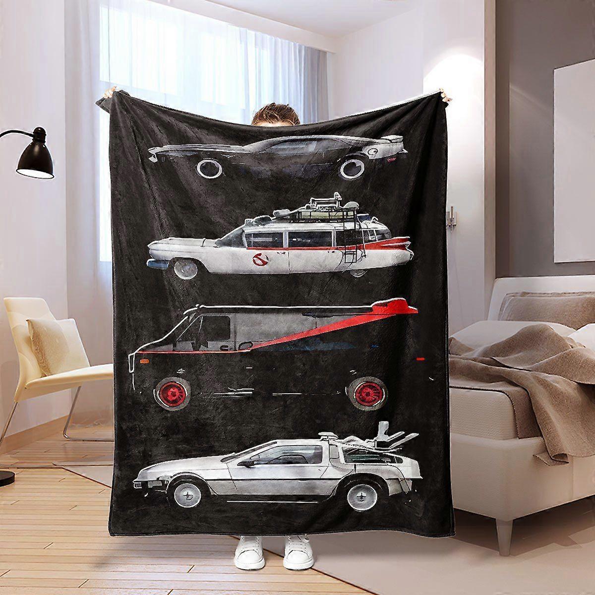 4-Car Printed Polyester Blanket - Soft Flannel Throw for Home Decor, Bed, Office, and Outdoor Use - Vibrant Retro Car De-poiuy177
