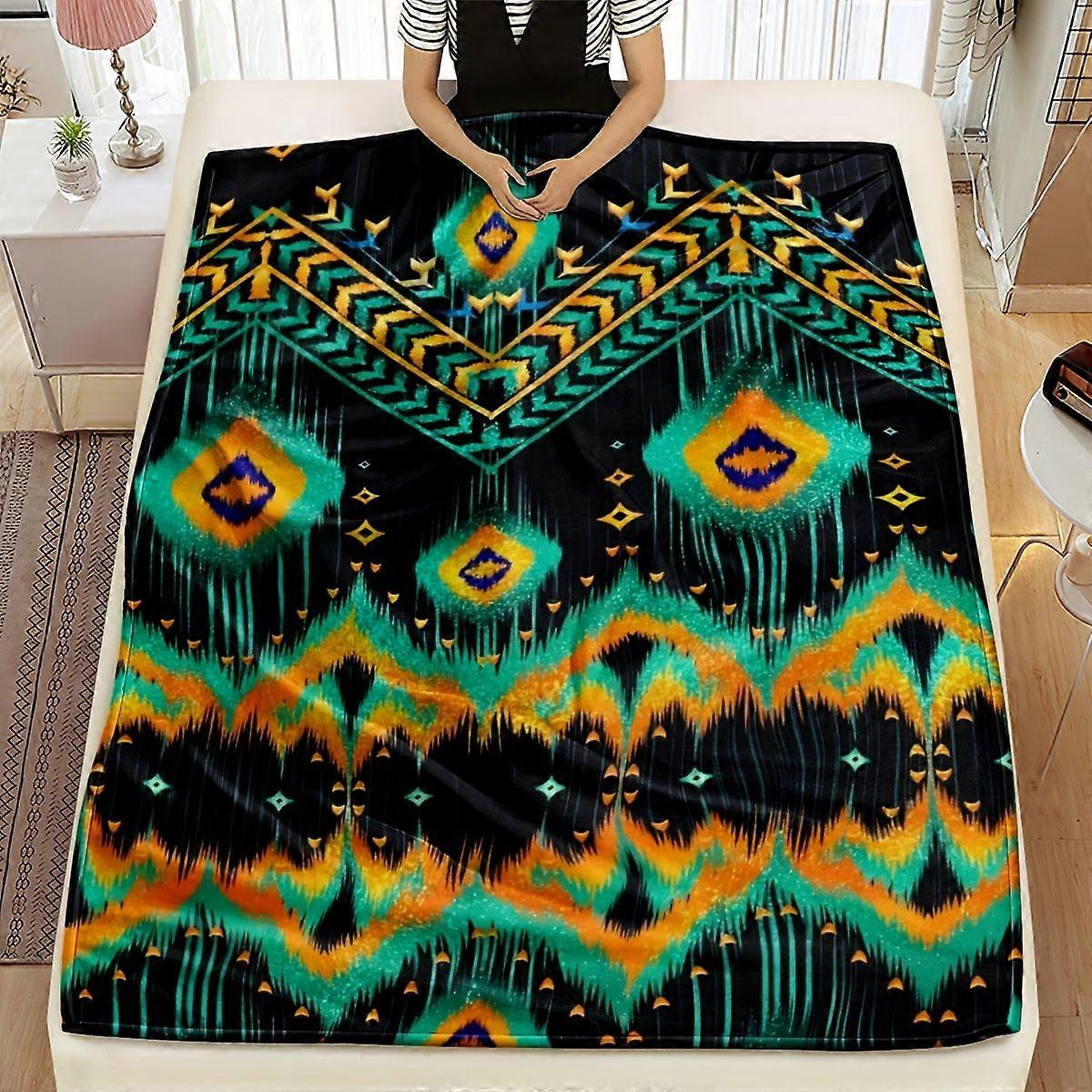 Luxurious Comfort | Vibrant Tribal-Inspired Polyester Throw Blanket - Soft, Cozy, and Versatile for Bed, Couch, Travel, -poiuy237