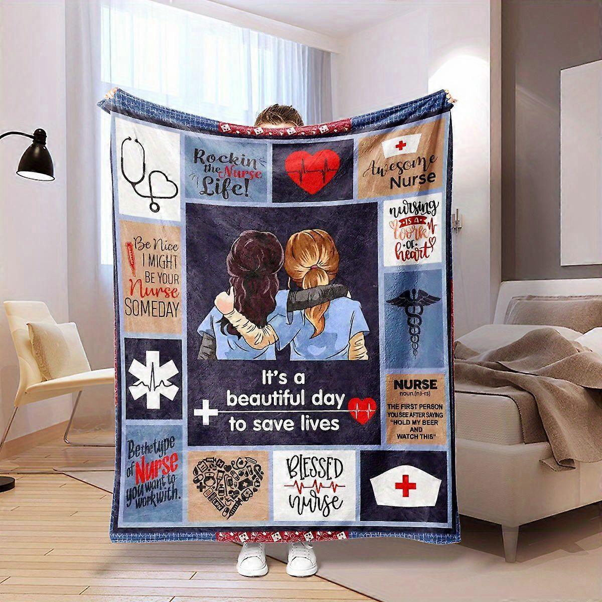 Nurse-Themed Polyester Printed Throw Blanket \u2013 Soft, Cozy, Multi-Purpose Flannel Blanket with Medical Graphics, Ide-poiuy258