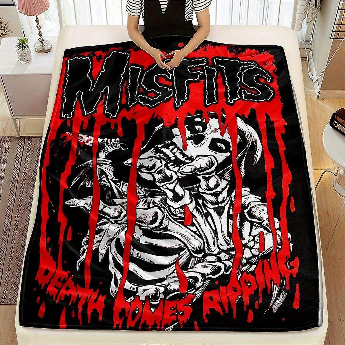 Misfits Skull Graphic Blanket - Soft Polyester Flannel, Vintage Horror Design with Red Splatter, Black & White Print for-poiuy260