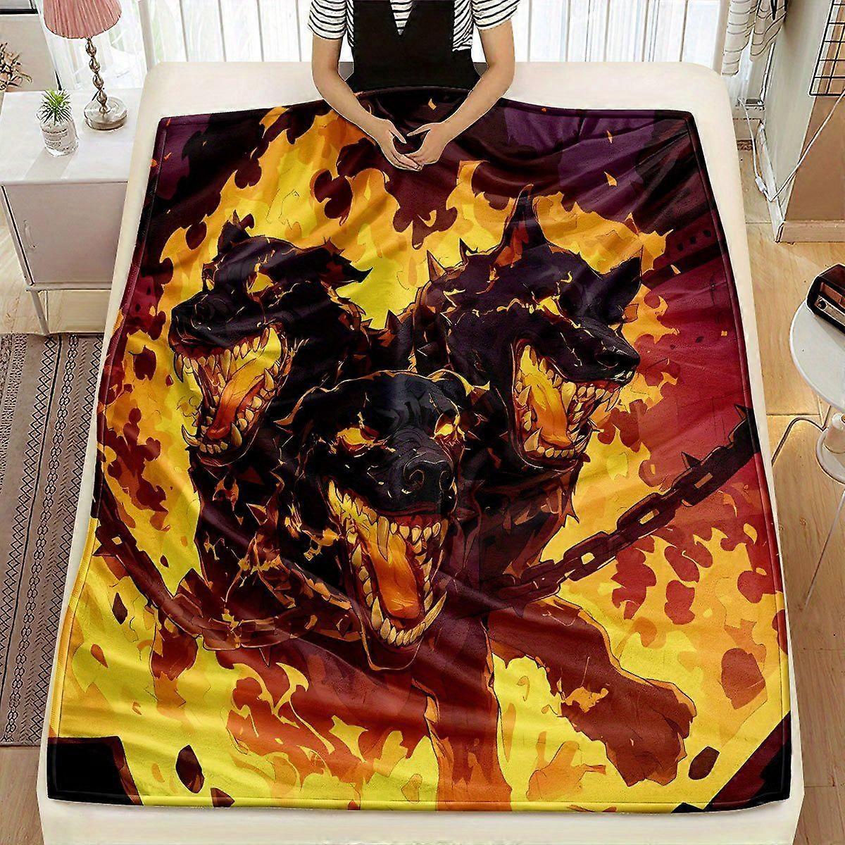 Inferno Three-Headed Dog Fleece Blanket \u2013 Vibrant Hellhound Print, Soft & Cozy Multi-Purpose Throw for Bed, Sofa, O-poiuy309