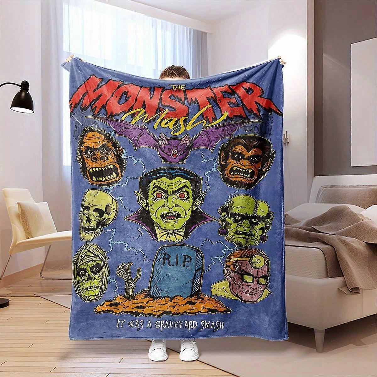 Monster vs. Monster Retro Horror Print Flannel Blanket - Soft All-Season Throw for Bed, Couch, Office & Outdoor Use - Mu-poiuy375
