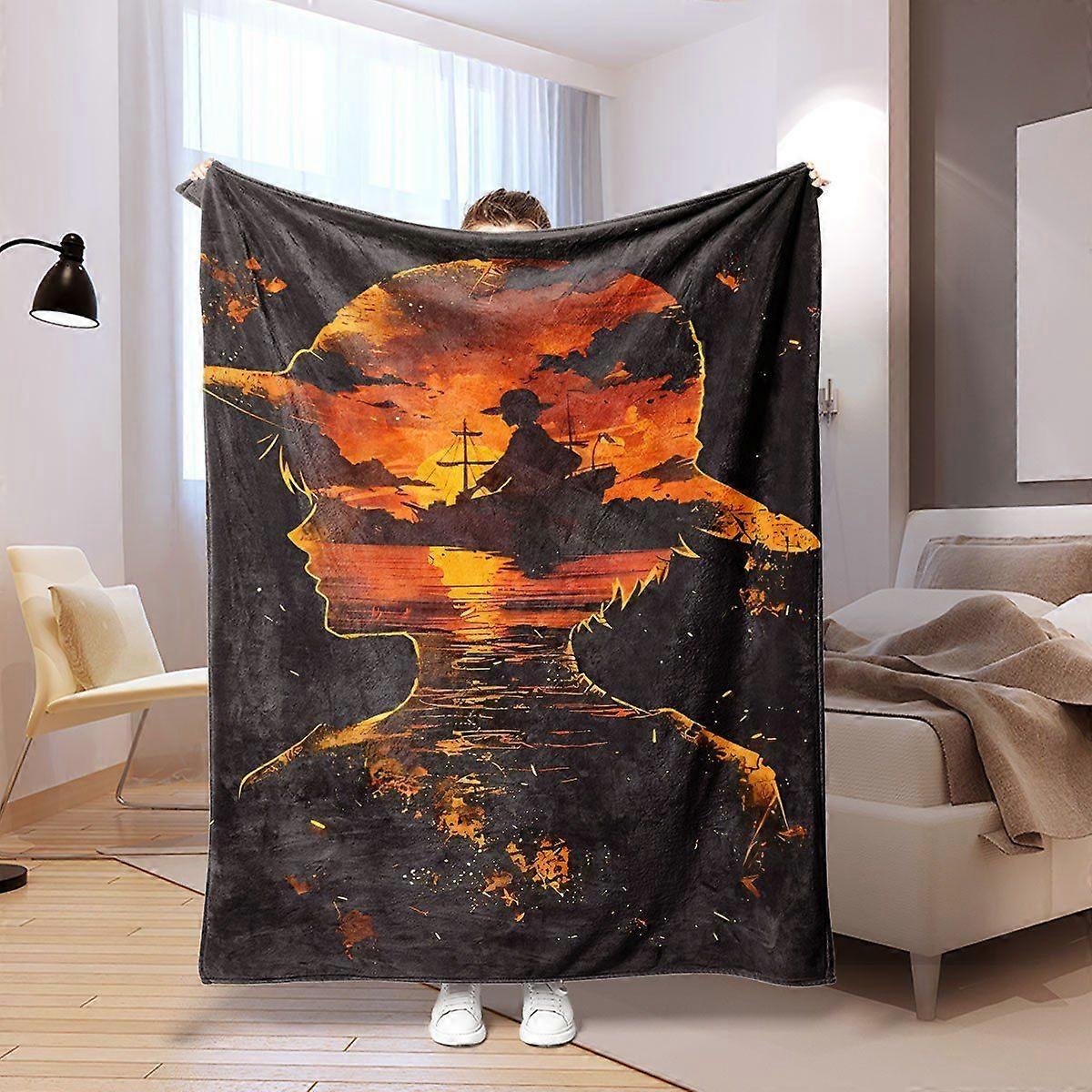 1pc Fantasy Sunset Print Flannel Blanket - Contemporary Style, All Seasons, Stain Resistant, Digital Print, Polyester, 2-poiuy406