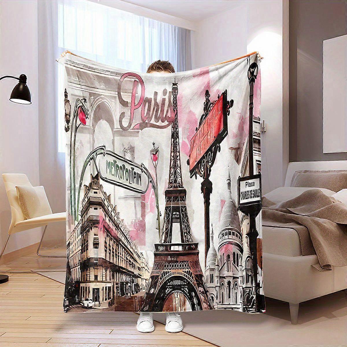Romantic Eiffel Tower Polyester Printed Throw Blanket \u2013 Soft, Cozy, and Versatile for Bed, Couch, Travel, and Home -POKJH333