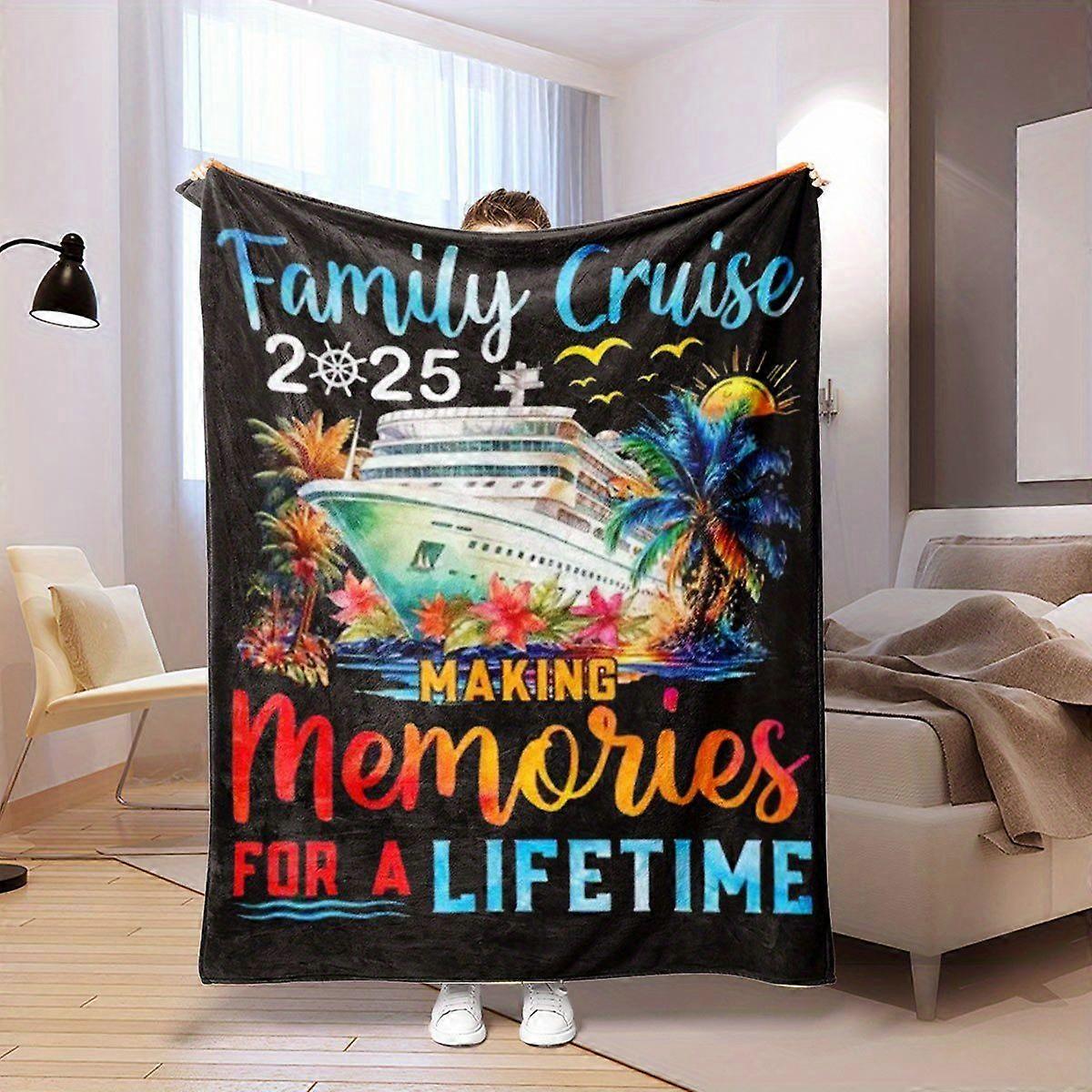 Family Cruise 2025 Tropical Print Flannel Throw Blanket - Soft All-Season Multi-Use for Home, Travel, Office & Outdoor --POKJH417