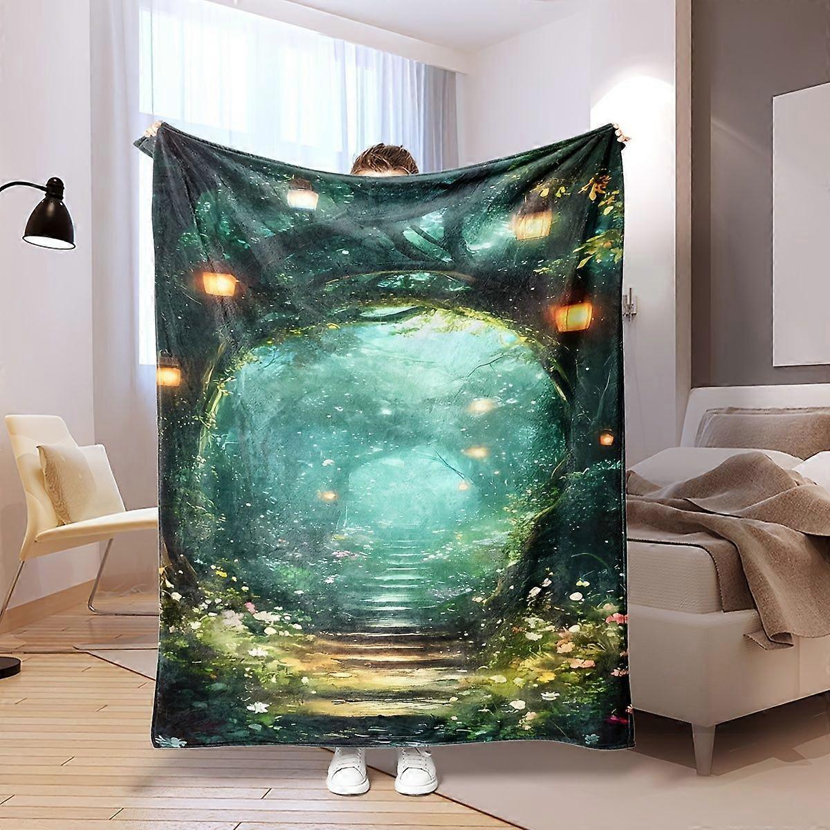 Enchanted Forest Print Flannel Throw Blanket \u2013 Soft, Cozy, and Versatile for Home or Travel, Dreamy Fantasy Design -POKJH404