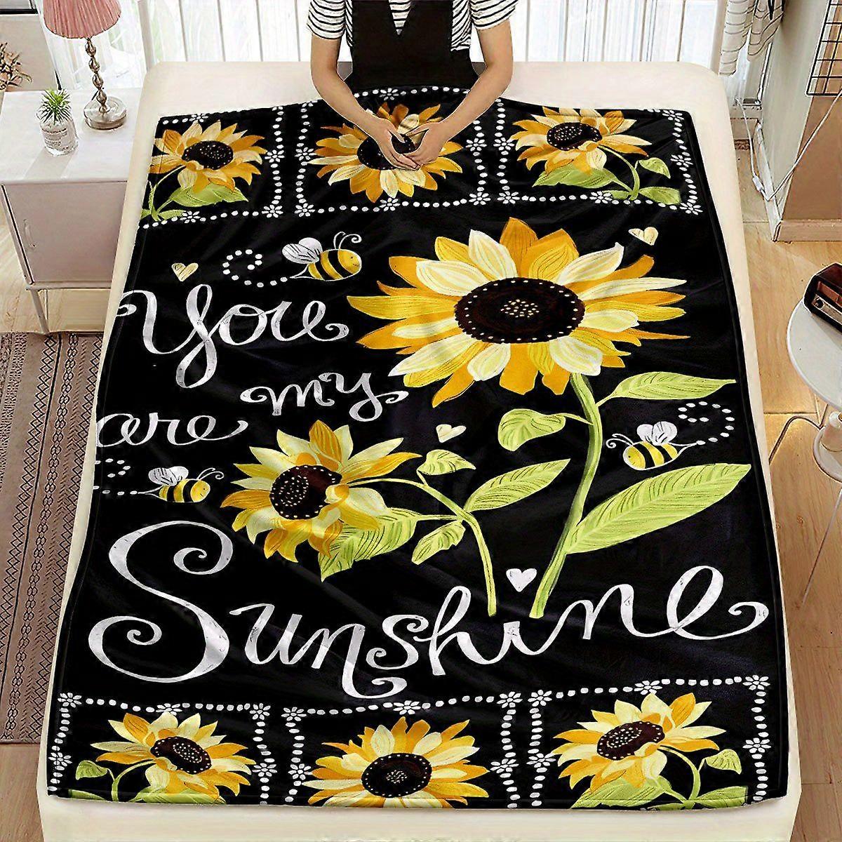 Sunshine Polyester Print Gift Blanket - Soft, Lightweight, and Versatile for Indoor & Outdoor Use - Sunflower & Bee Desi-POKJH430